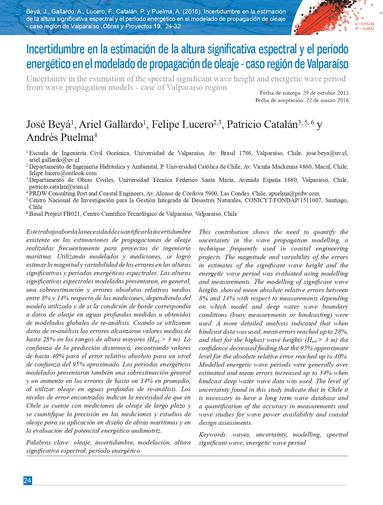 Incertidumbre en la estimación de la altura significativa espectral y el período energético en el modelado de propagación de oleaje - caso región de Valparaíso