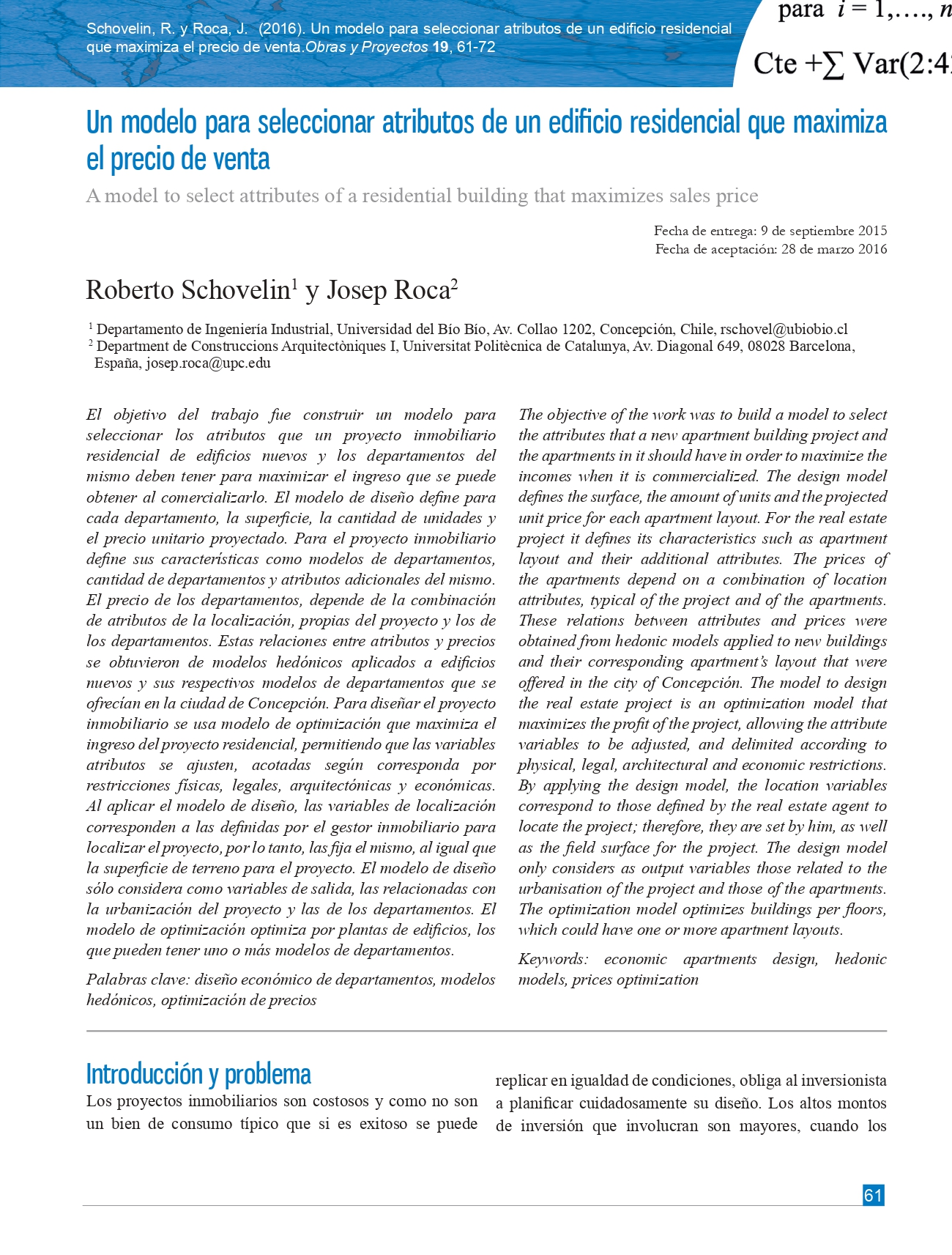 Un modelo para seleccionar atributos de un edificio residencial que maximiza el precio de venta