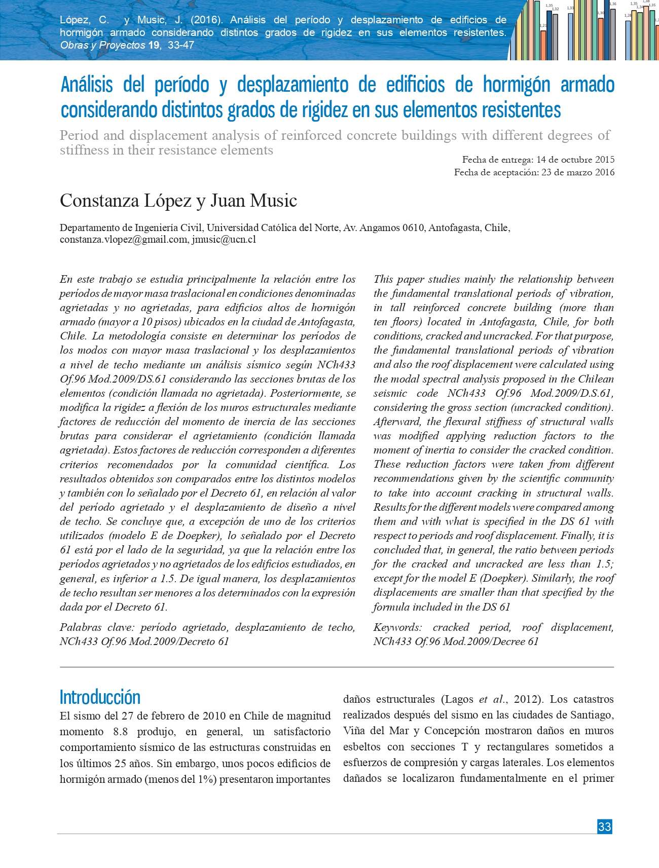 Análisis del período y desplazamiento de edificios de hormigón armado considerando distintos grados de rigidez en sus elementos resistentes