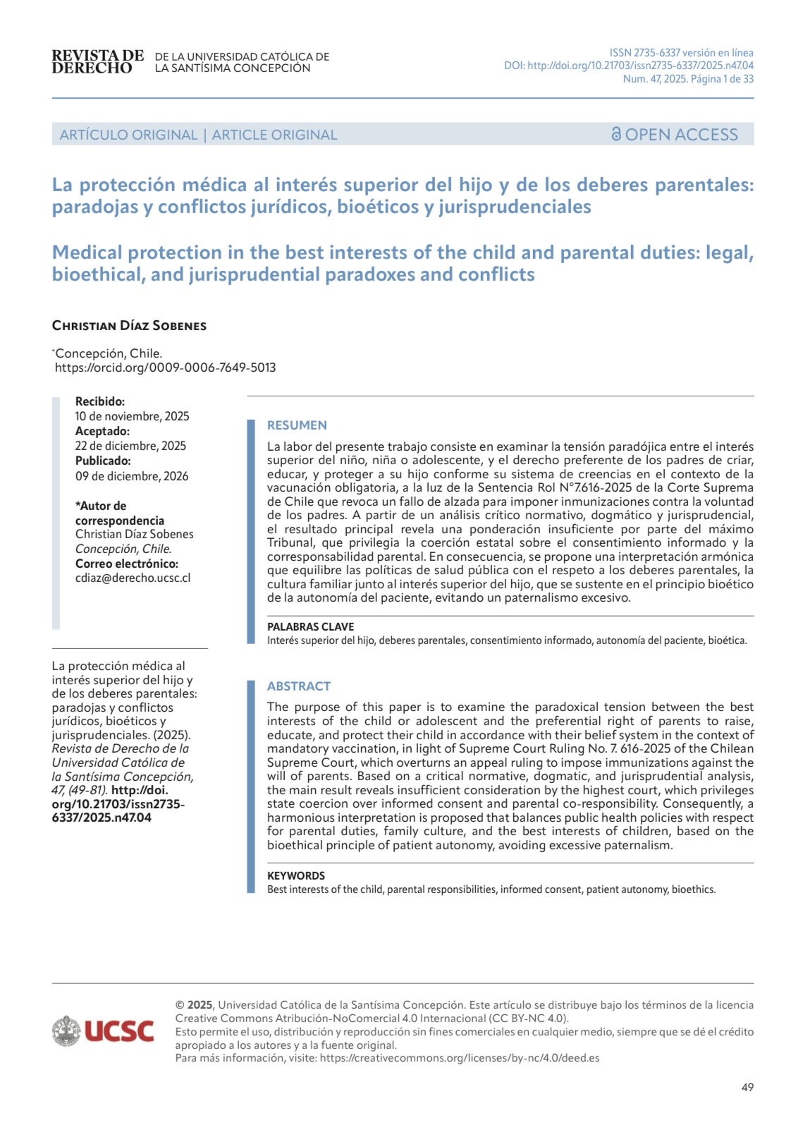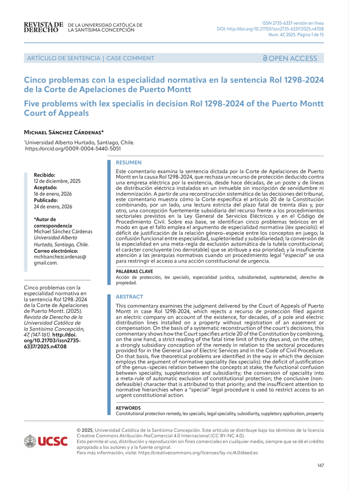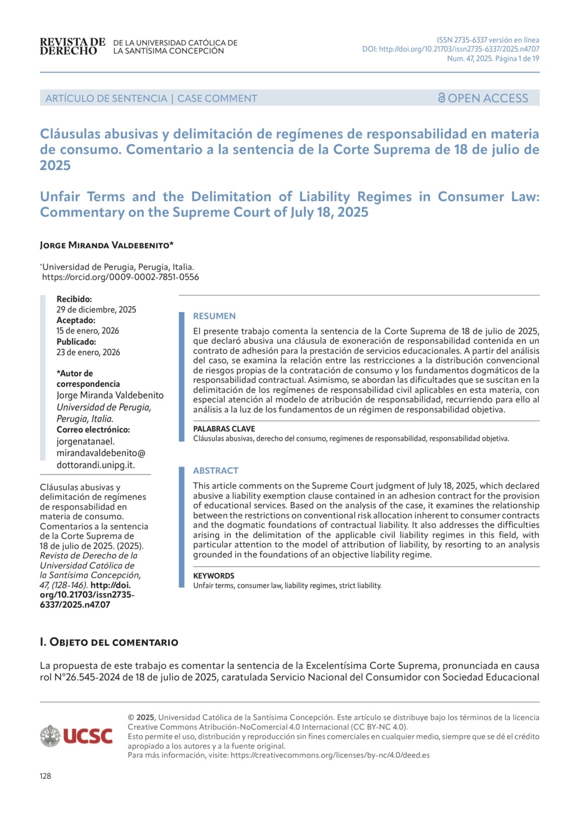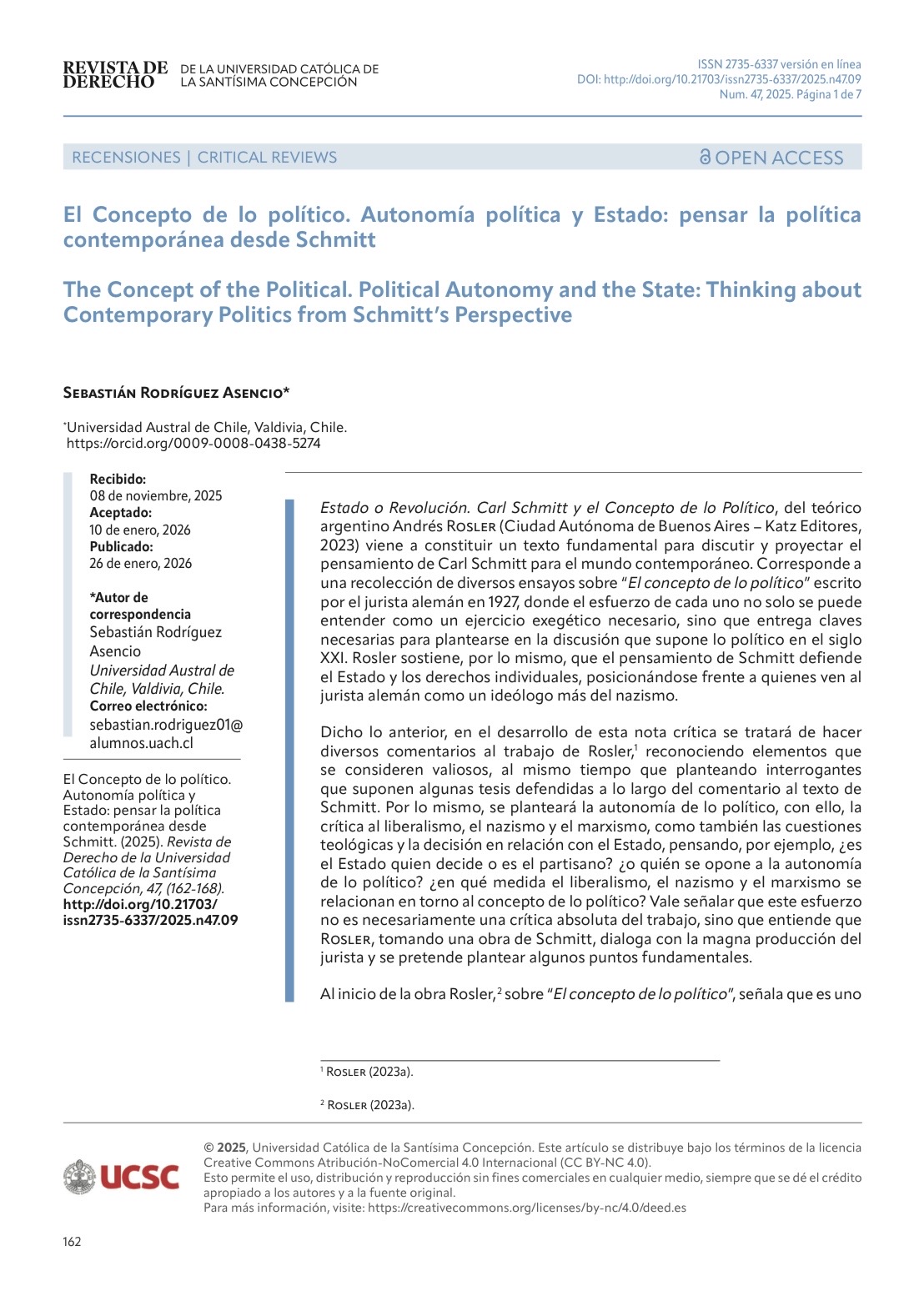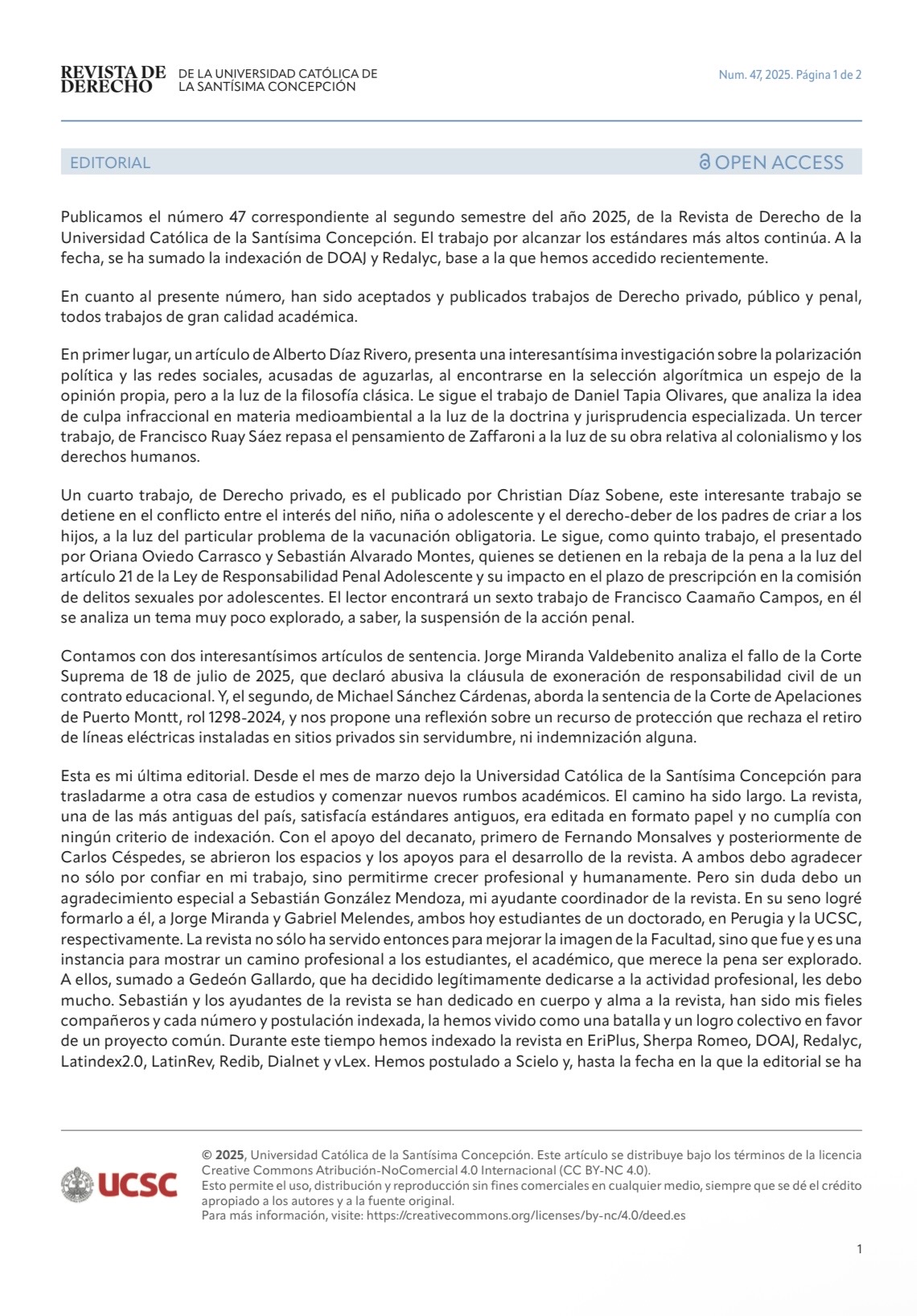 La Revista de Derecho de la Universidad Católica de la Santísima Concepción, está abierta a toda la comunidad, y es apoyada académica y económicamente por la Universidad antes indicada. Los juicios vertidos por los autores en sus artículos no representan la opinión de la institución que edita la Revista.